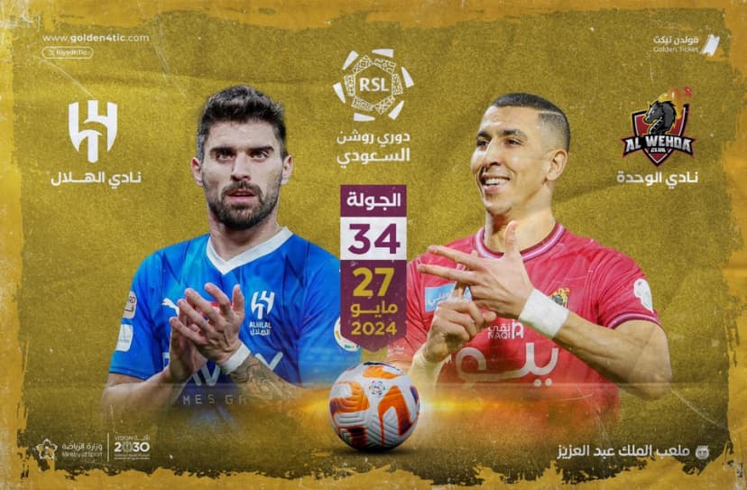 مباراة الهلال و الوحدة في دوري روشن الجولة 34
