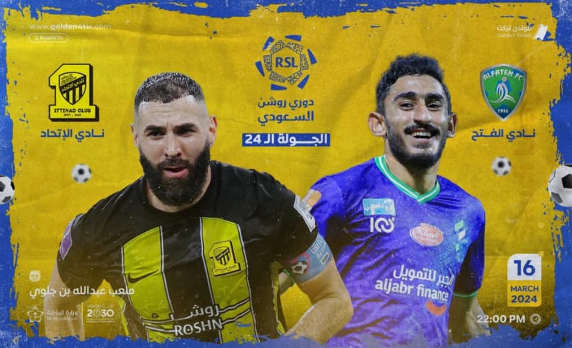 مباراة الفتح و الاتحاد في دوري روشن السعودي الجولة 24